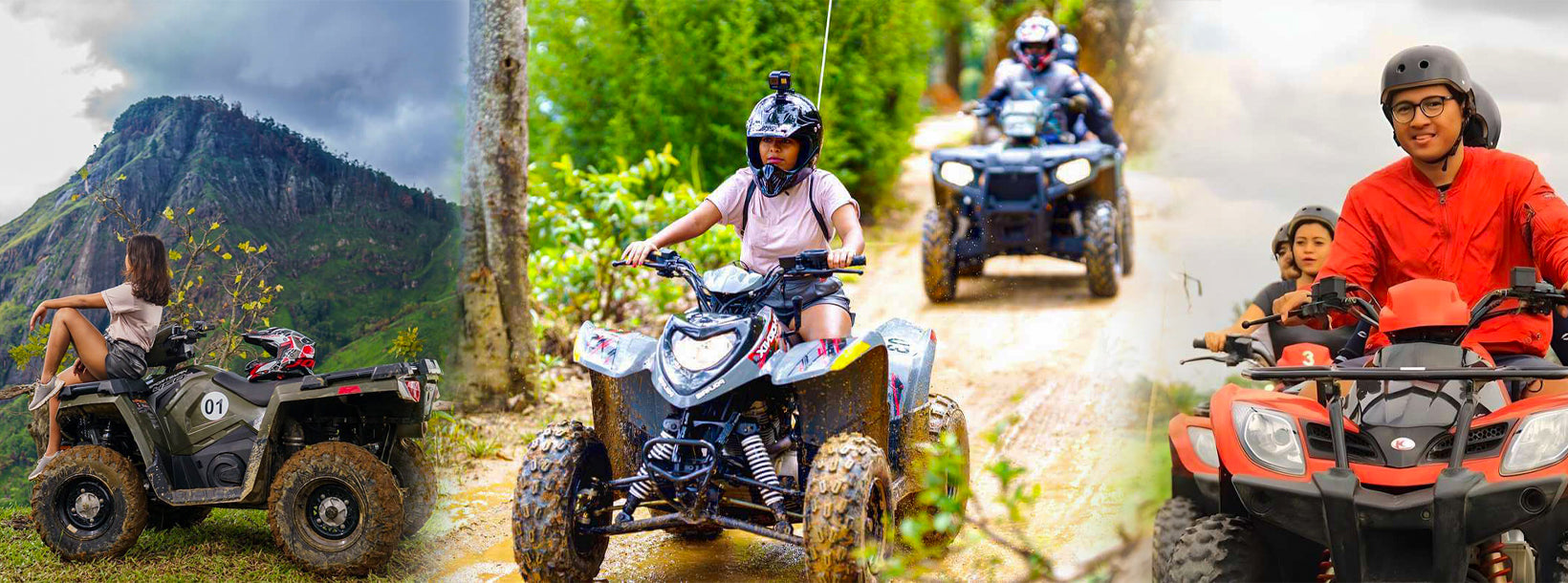 Sri Lanka es una tierra que ofrece muchas vacaciones inolvidables, mientras que las vacaciones de aventura sin duda deberían formar parte de su lista de deseos. Una de las muchas opciones de aventura que se ofrecen para aumentar la adrenalina son los paseos en cuatriciclo. Un ATV (vehículo todo terreno) o más conocido simplemente como cuatriciclo está especialmente diseñado para recorrer muchos tipos de terrenos, desde senderos de agua fangosa hasta carreteras resbaladizas e irregulares de las Montañas Rocosas que serpentean a través de paisajes pintorescos. Los manillares dirigen el ATV mientras el vehículo utiliza neumáticos de baja presión.