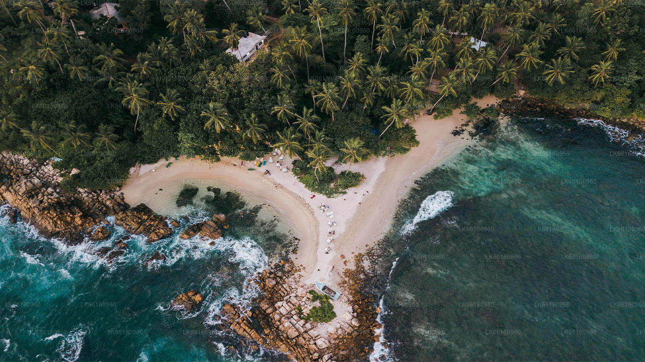Mirissa, una playa de bahía perfecta en el cinturón costero sur de Sri Lanka, se encuentra a 146 km al sur de Colombo. Se puede llegar a Mirissa por la carretera Colombo-Galle-Hambantota, así como por el ferrocarril costero sur Colombo-Galle-Matara. Un par de kilómetros más allá de la hermosa playa de Weligama, casi escondida de los densos cocoteros que bordean la bahía, se encuentra la playa más hermosa de Mirissa. Es la playa para nadar, hacer snorkel, pescar, pasear en kayak de mar, hacer cruceros por la bahía y otros deportes acuáticos.