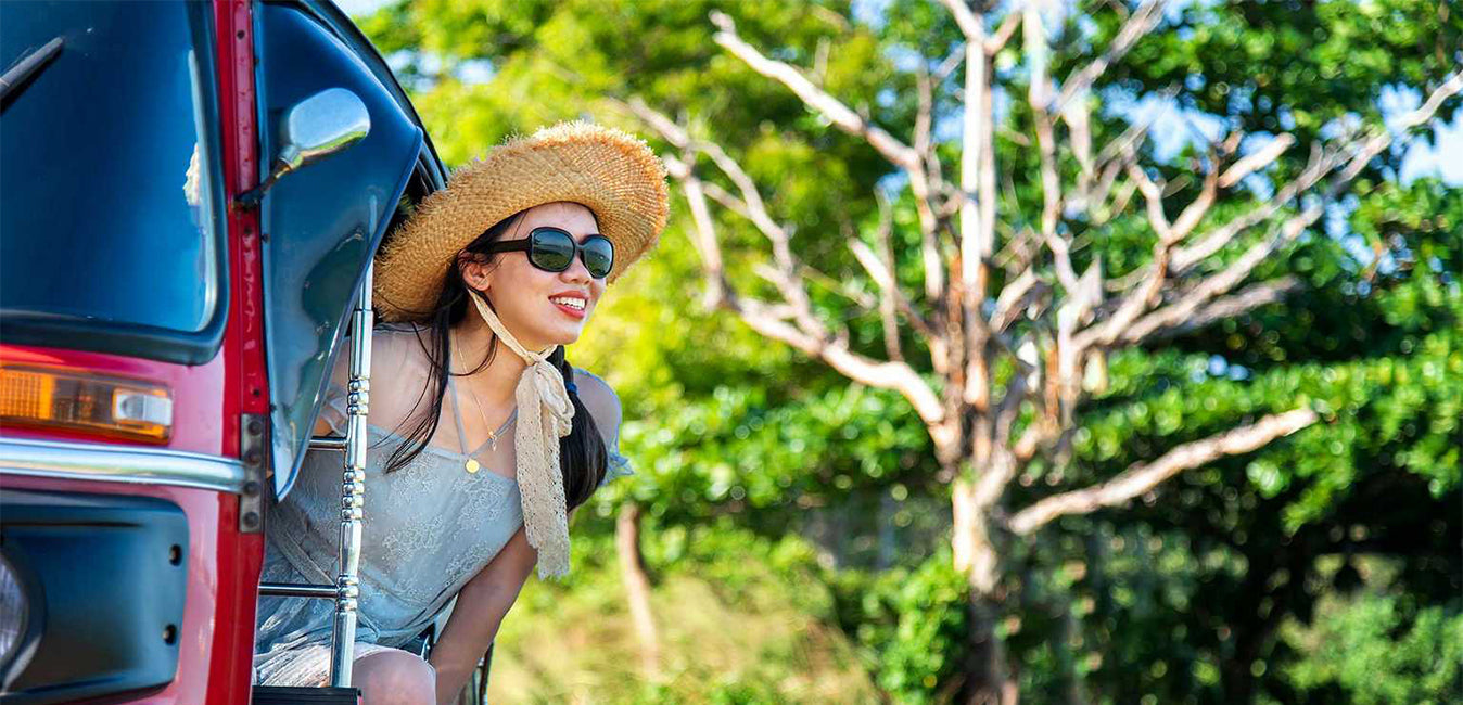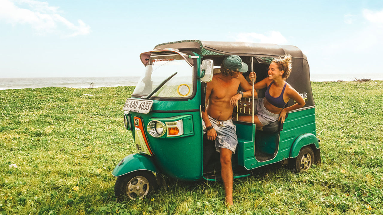 La forma más sencilla de moverse por Sri Lanka y conectar con la vida local es, sin duda, viajar en tuk-tuk. Puedes llevar tus tablas de surf en el techo (ahora está prohibido en ciclomotores) y viajar hasta tres personas, además del conductor.
