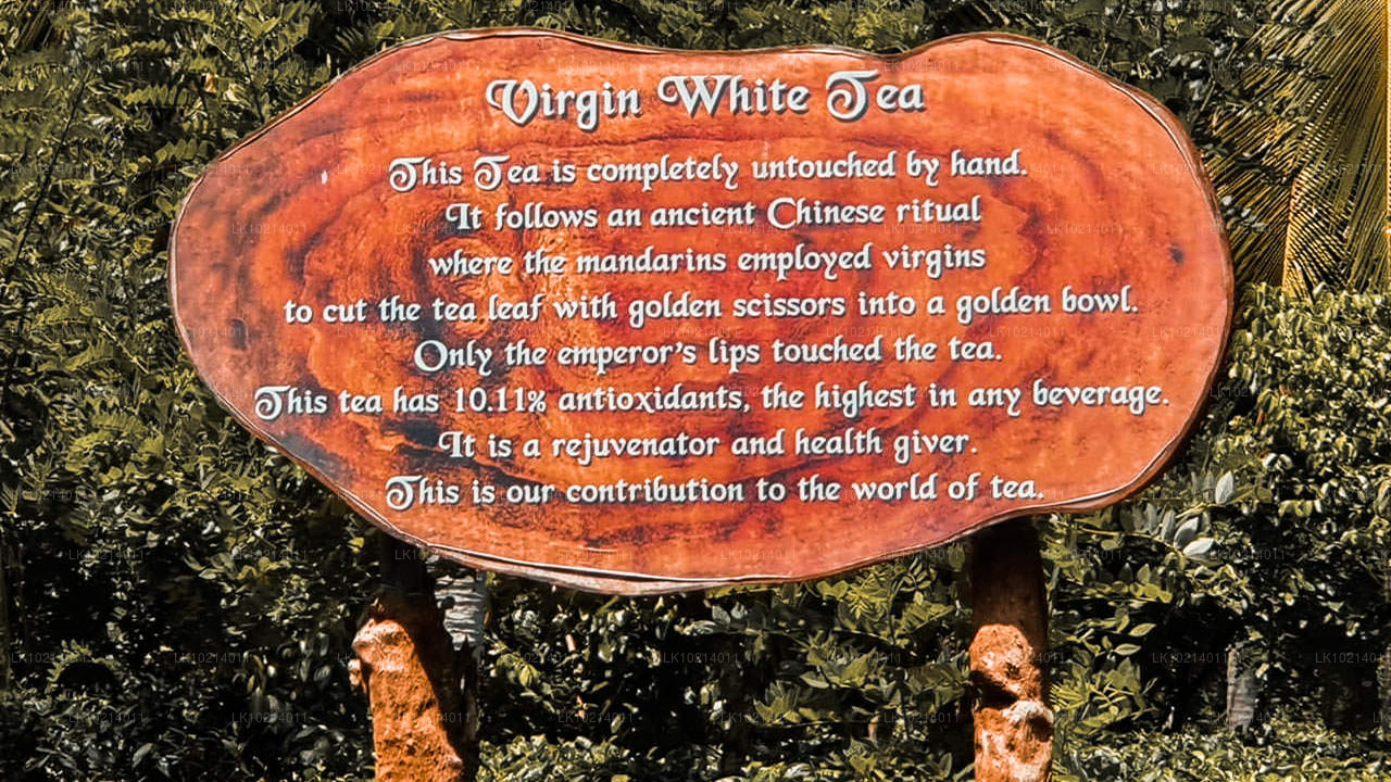 Visite la Fábrica de Té Handunugoda, también conocida como la Fábrica de Té Blanco Virgen. Conozca la historia del té que produce. Descubra cómo se recolecta y procesa el famoso Té Blanco Virgen, sin intervención humana. Disfrute de una degustación con una deliciosa taza de té y un exquisito pastel de chocolate. Tenga la oportunidad de comprar hojas de té como recuerdo.