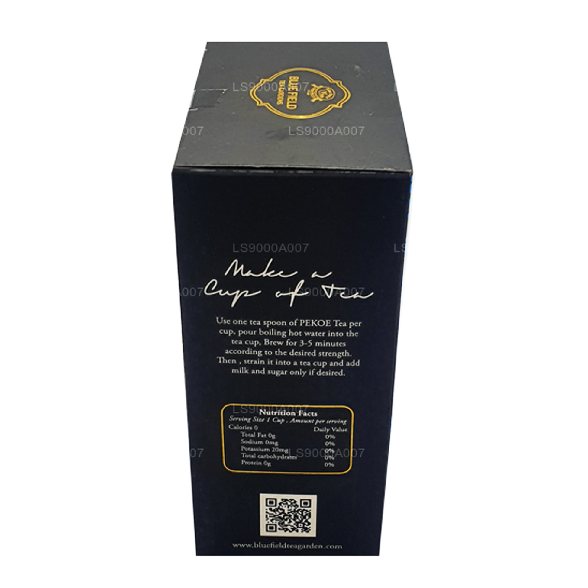 (SKU: LS9000A007) Un estilo de hojas rizadas que da una taza ligera y un sabor delicado. El té negro PEKOE de Bluefield se cultiva en elevaciones altas de la hermosa plantación de té de Ramboda. Nuestro té es producido por las manos de los fabricantes de té tradicionales utilizando el método tradicional y ortodoxo de producción de té negro. El logotipo del león en el producto asegura que este producto es té de Ceilán 100% puro de Sri Lanka.