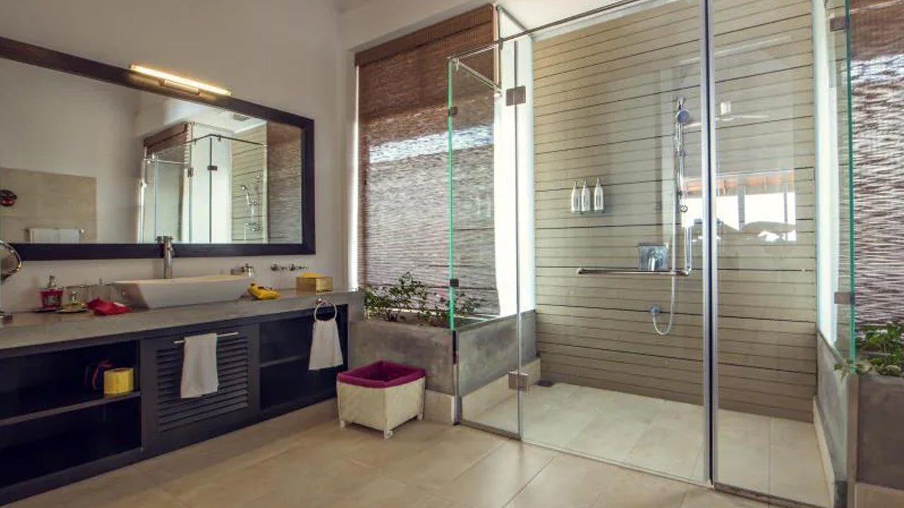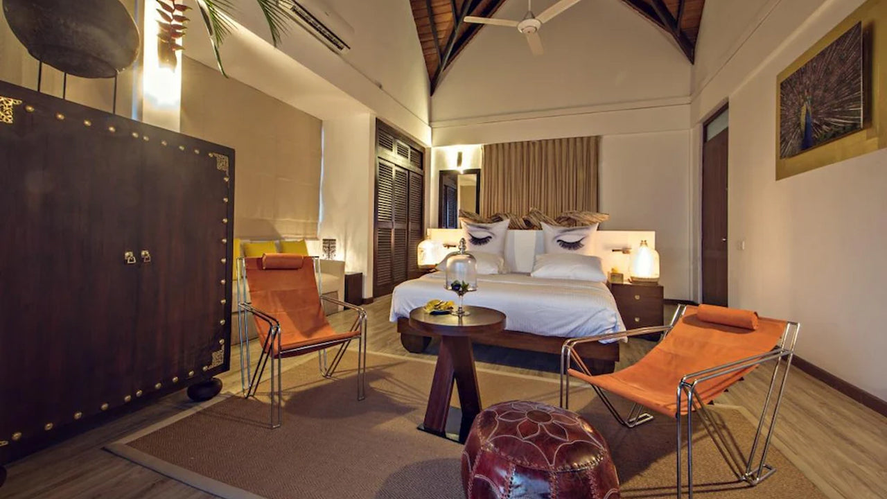 The hotel features beautifully designed suites with colonial-inspired interiors and modern amenities. Each suite includes air conditioning, en-suite bathrooms, free Wi-Fi, and flat-screen TVs. Many rooms offer private balconies or terraces, with some featuring plunge pools or outdoor bathtubs for added luxury. Ocean or garden views provide a serene atmosphere for relaxation.