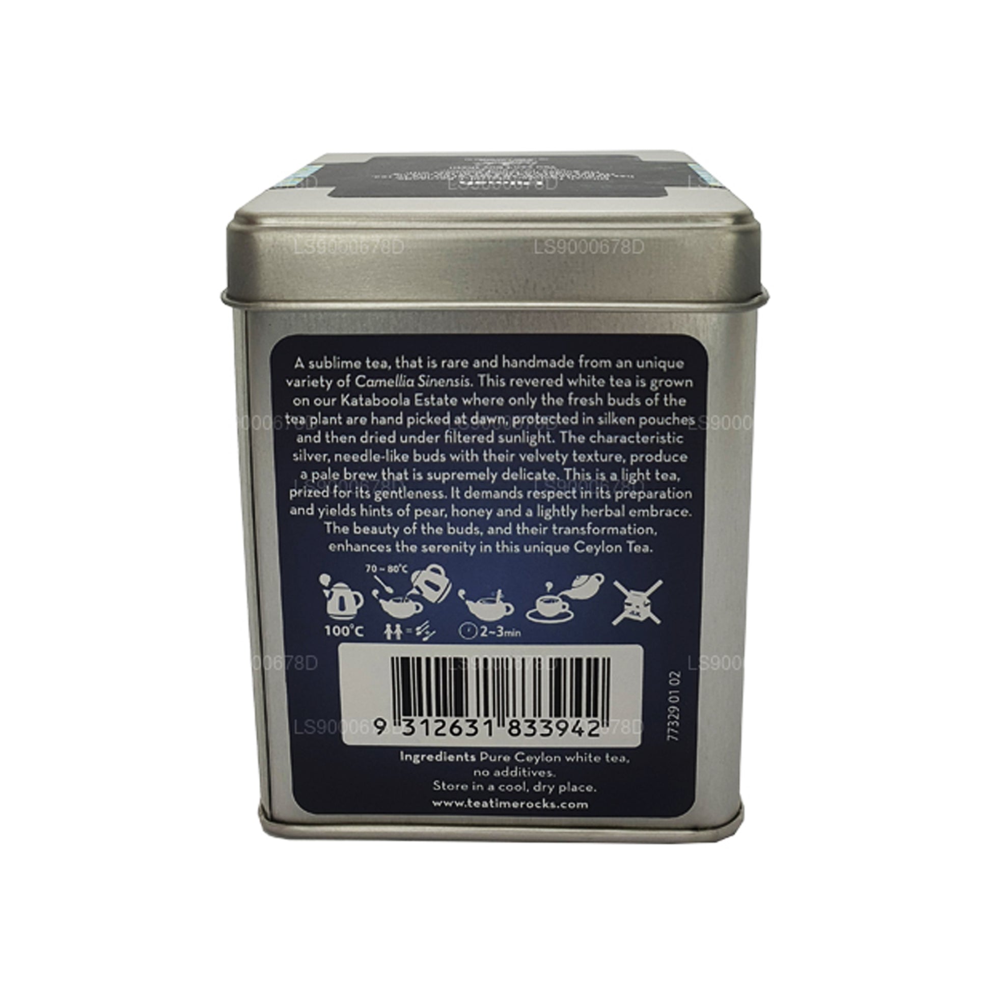 (SKU: LS9000678D) Té blanco raro y hecho a mano de la región de Nuwara Eliya en Ceilán. El té se cultiva a gran altura y se elabora con cogollos tiernos que se recogen a mano al amanecer. Los cogollos se secan al sol y se enrollan a mano, lo que da como resultado cogollos plateados en forma de aguja con una textura aterciopelada. Cuando se elabora, el té tiene un sabor ligero y delicado con un toque de carácter verdoso. Es un producto de edición limitada debido a su rareza, y el té blanco Dilmah es una versión genuina y refinada de esta bebida exclusiva