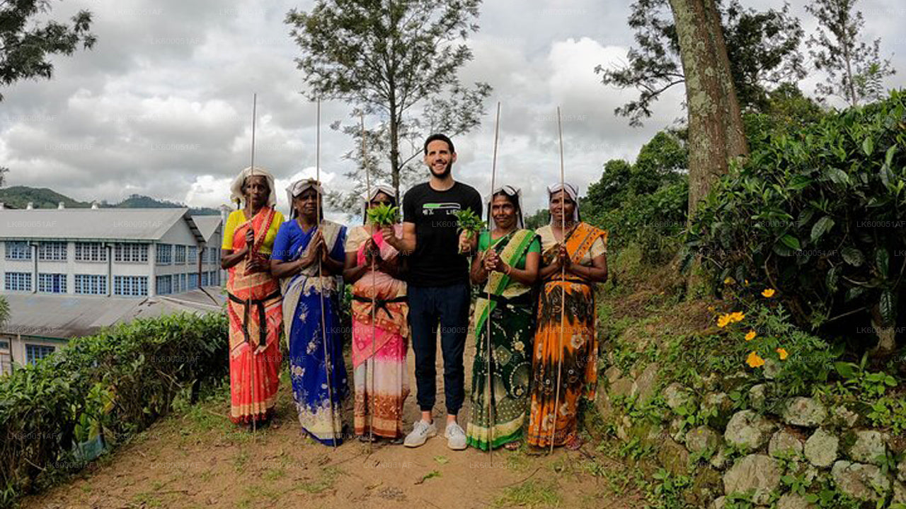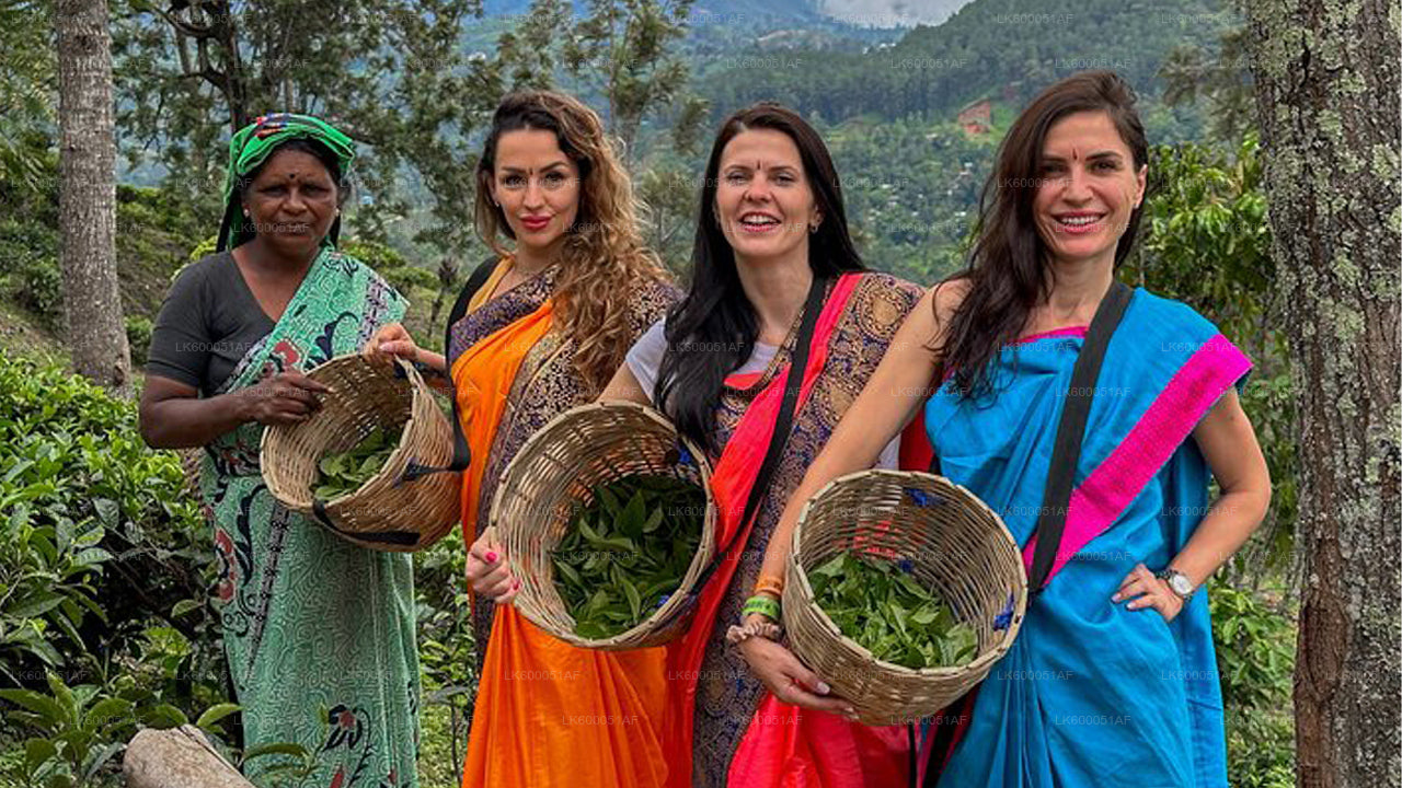 The tour starts with a peaceful walk through lush green tea fields, where you'll meet experienced tea pluckers and observe their traditional techniques. You'll also have the opportunity to try tea picking yourself, using a basket and a small mottu, as well as dress in the customary wraparound saree or sarong if you'd like to fully immerse yourself in the experience.