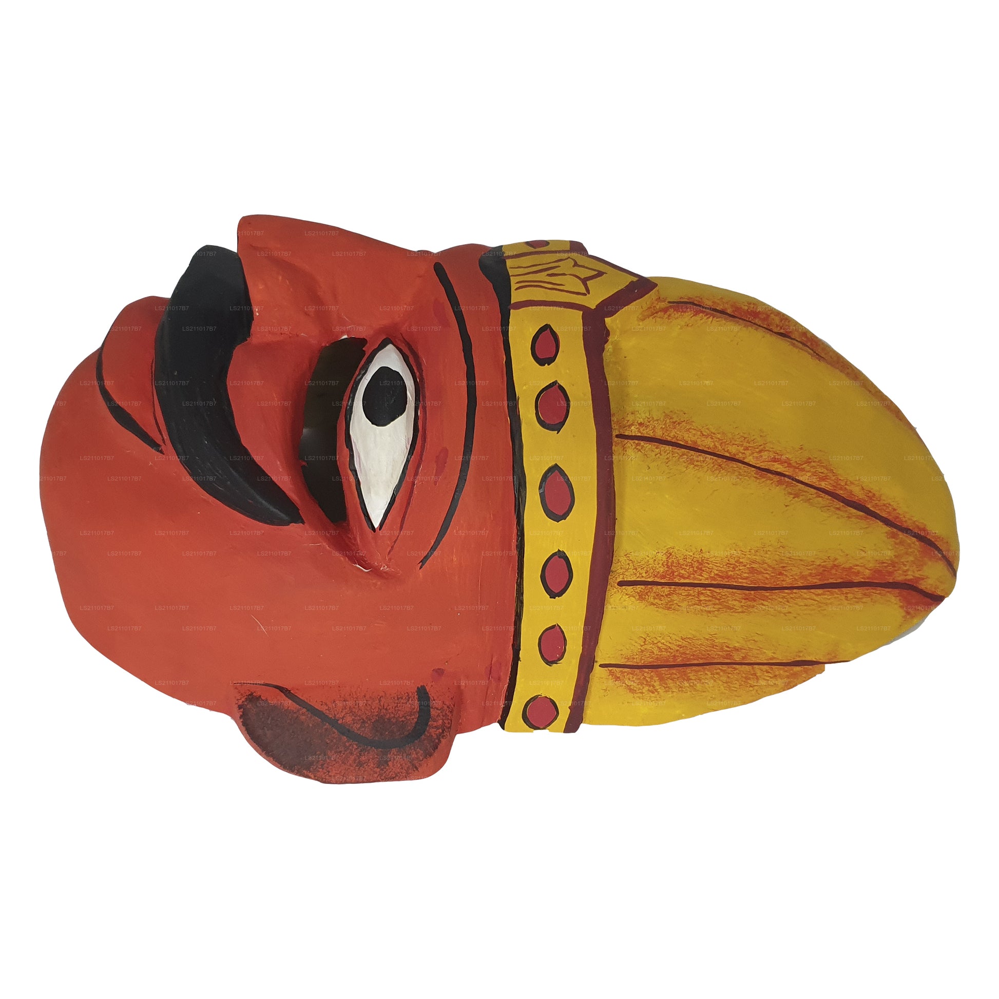 Handcrafted by skilled artisans, the Henchappu Kolam Mask is carved from lightweight wood and painted in bold, expressive colors to bring out its unique character. It is used in cultural performances, festivals, and decorative displays, showcasing Sri Lanka’s artistic heritage.