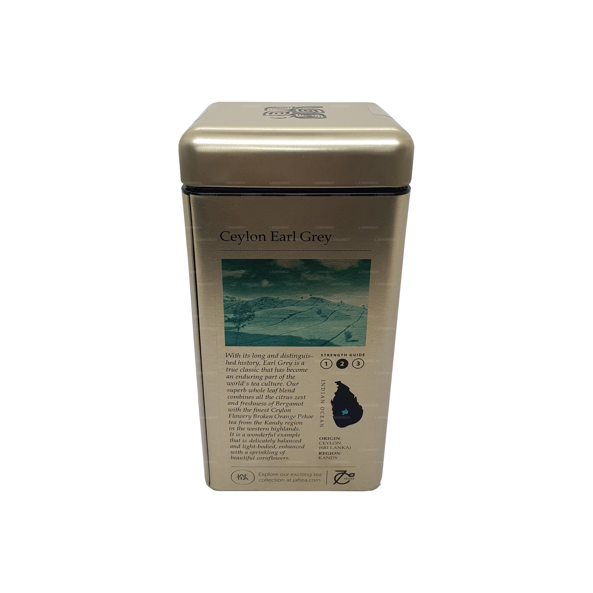 Jaf Tea Ceylon Earl Grey es una mezcla de hojas enteras de primera calidad elaborada con el mejor té FBOP de Ceilán de la región de Kandy, con la cáscara cítrica de la bergamota para obtener un aroma y un sabor refrescantes. Esta mezcla, enriquecida con delicados tés de las tierras altas de Dimbulla y una pizca de acianos para darle más elegancia, ofrece una taza de té ligera, aromática y equilibrada. Inspirado en la tradición atemporal que lleva el nombre de un primer ministro británico del siglo XIX, ofrece una experiencia de té relajante y estimulante que refleja la calidad, la pureza y la auténtica herencia del té