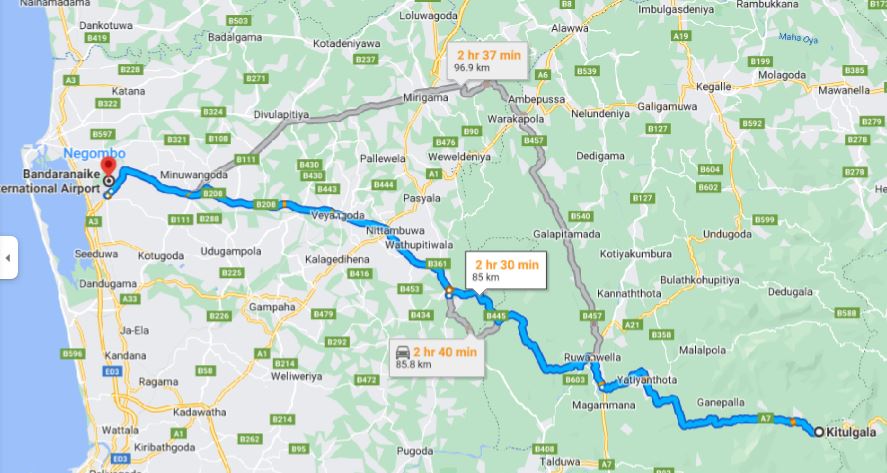- Pick up from Kitulgala and drop-off at ANY address within the city limits of Colombo Airport (CMB).