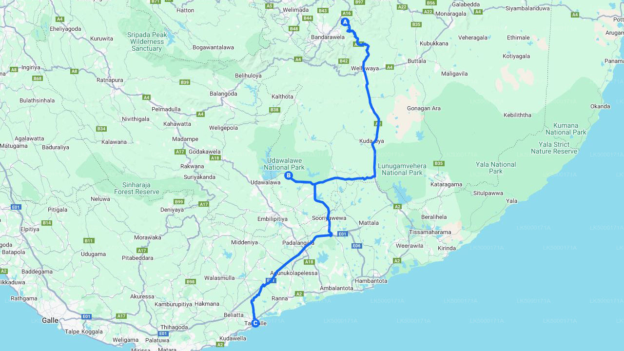 Embark on a memorable journey with a private transfer from Ella to Tangalle, featuring an exhilarating safari at Udawalawe National Park. Your day begins with a comfortable pickup from Ella at 12:00 PM, traveling through Sri Lanka’s scenic landscapes. Enjoy breathtaking views of rolling hills, lush tea plantations, and misty forests as you make your way towards Udawalawe, a renowned wildlife sanctuary famous for its elephant herds.
