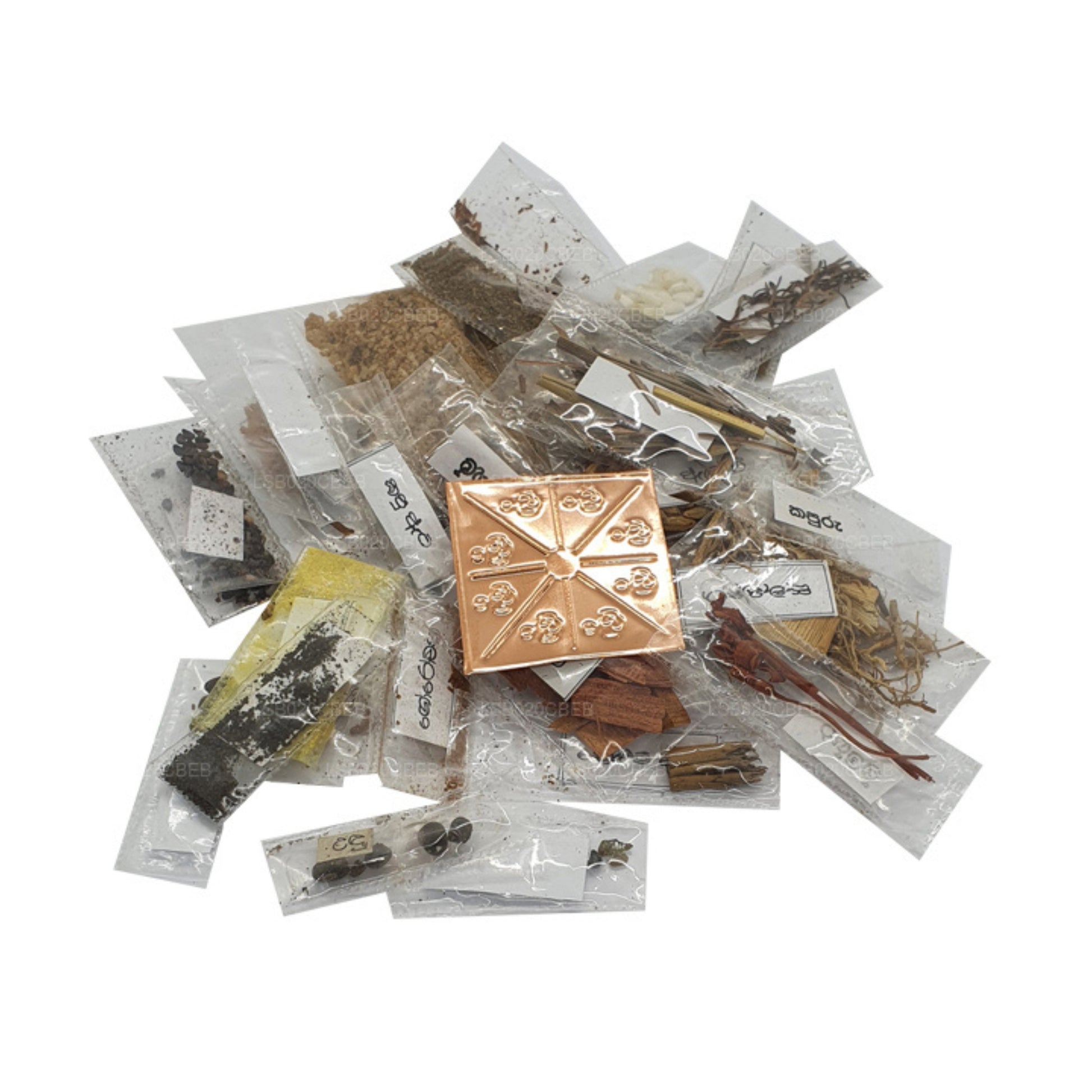 Este conjunto de Punsanda incluye no menos de 36 elementos cuidadosamente seleccionados, incluida la placa de cobre con los versículos sagrados que utilizaba regularmente el Rey Dutugemunu, conocido por su gran mérito y prosperidad.