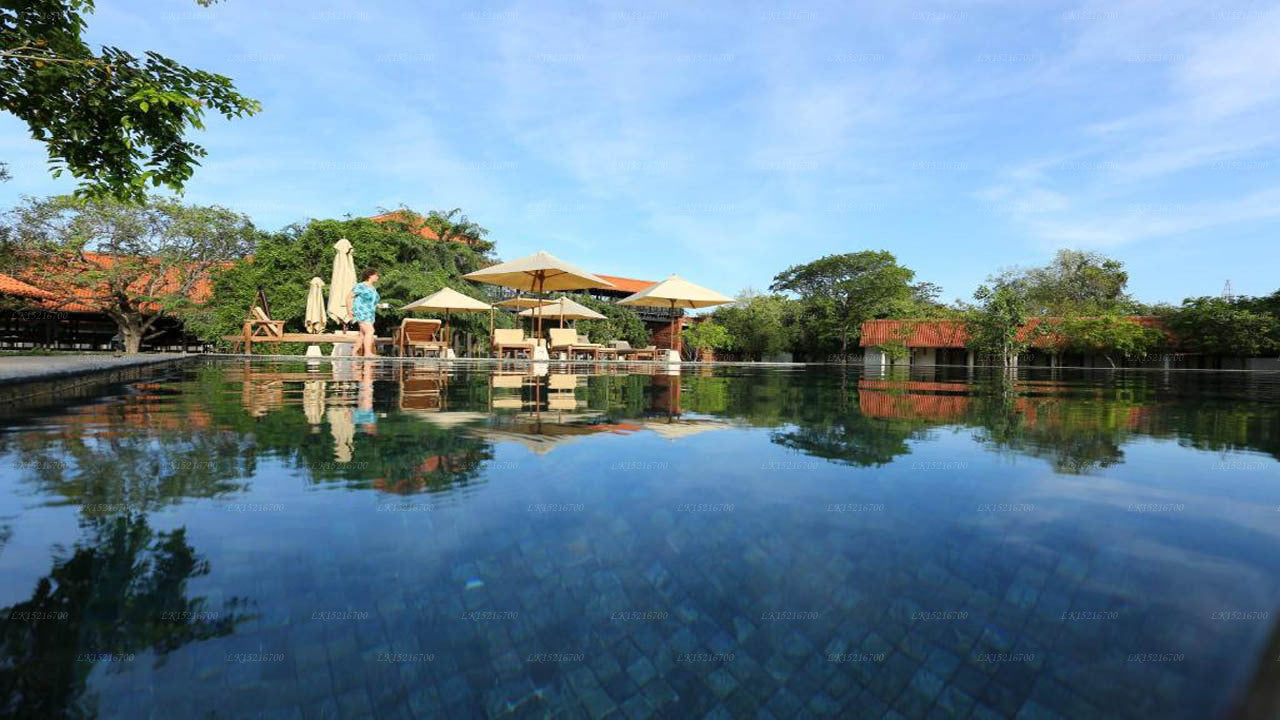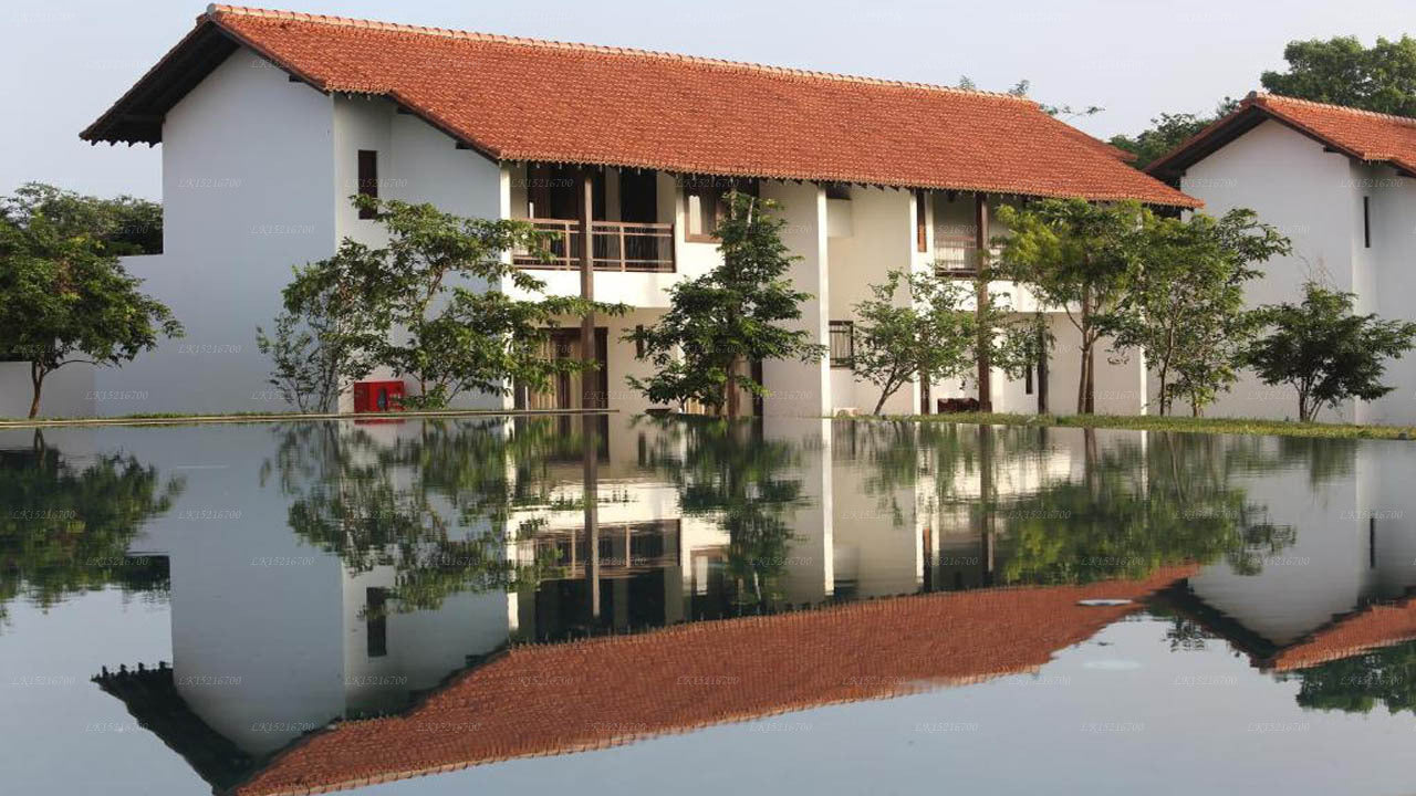Sigiriya Hotel is a 3-hour drive from Bandaranaike International Airport. Situated close to Sigiriya Rock, the resort offers easy access to this renowned historical site. The uniquely designed 100 feet wooden bridge provides stunning views of the Sigiriya Rock and the Pidurangala Monastery, adding to the scenic charm.