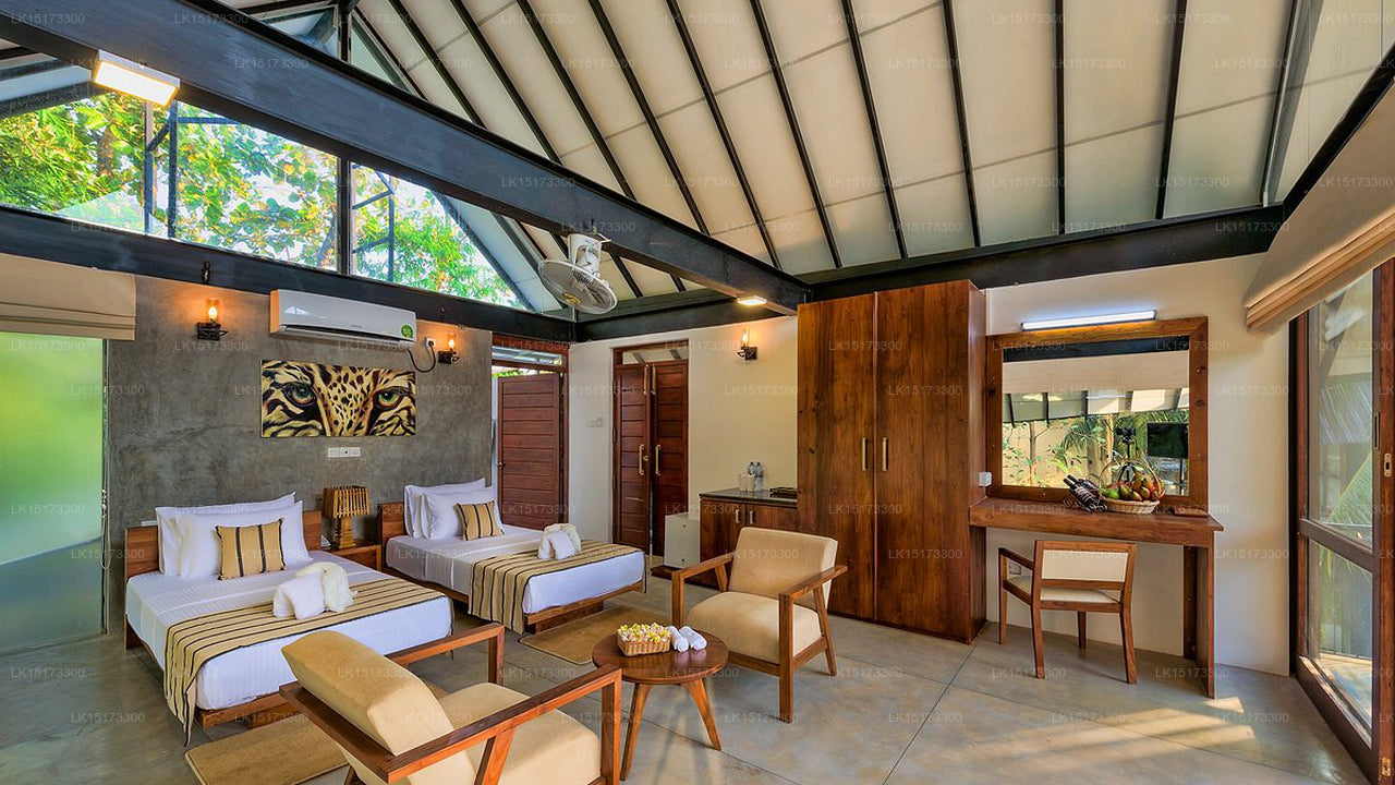Located near the bustling town of Embilipitiya, Thuduwa Camp is perfectly situated for easy access to Udawalawe National Park, known for its large elephant population and diverse array of wildlife. The camp’s remote location near the park allows guests to feel fully immersed in the natural beauty and tranquility of the area.