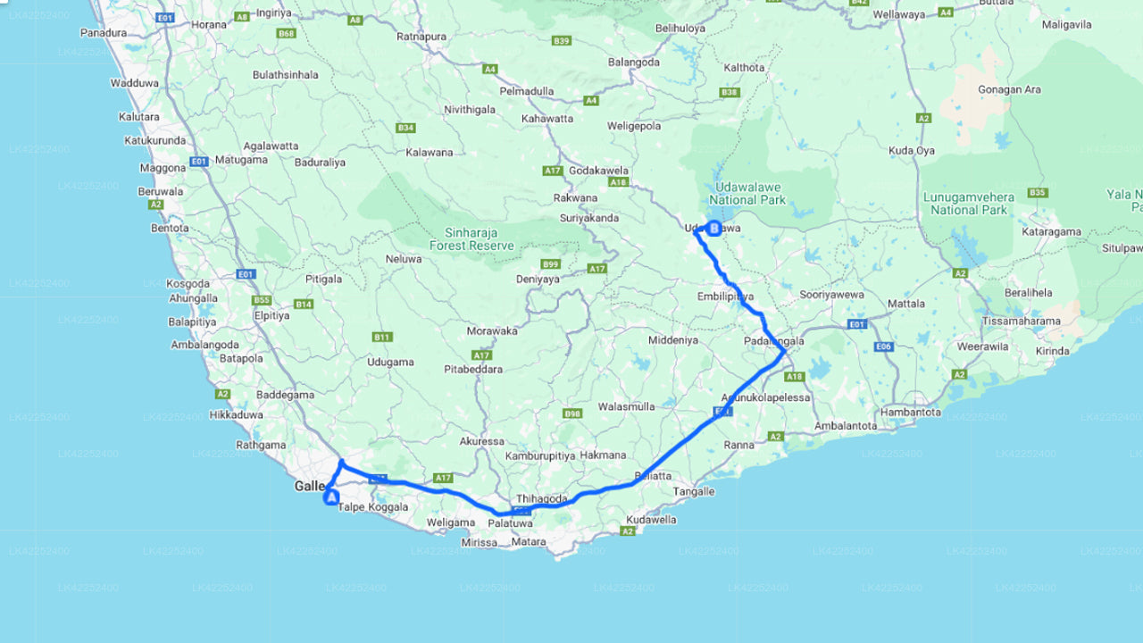 - Pick-up within the city limits of Unawatuna and drop-off within the city limits of Udawalawe.