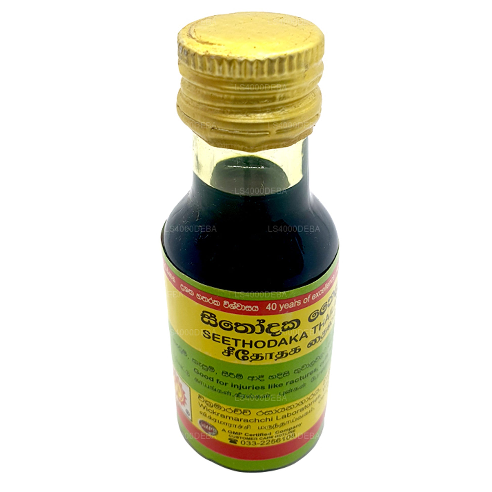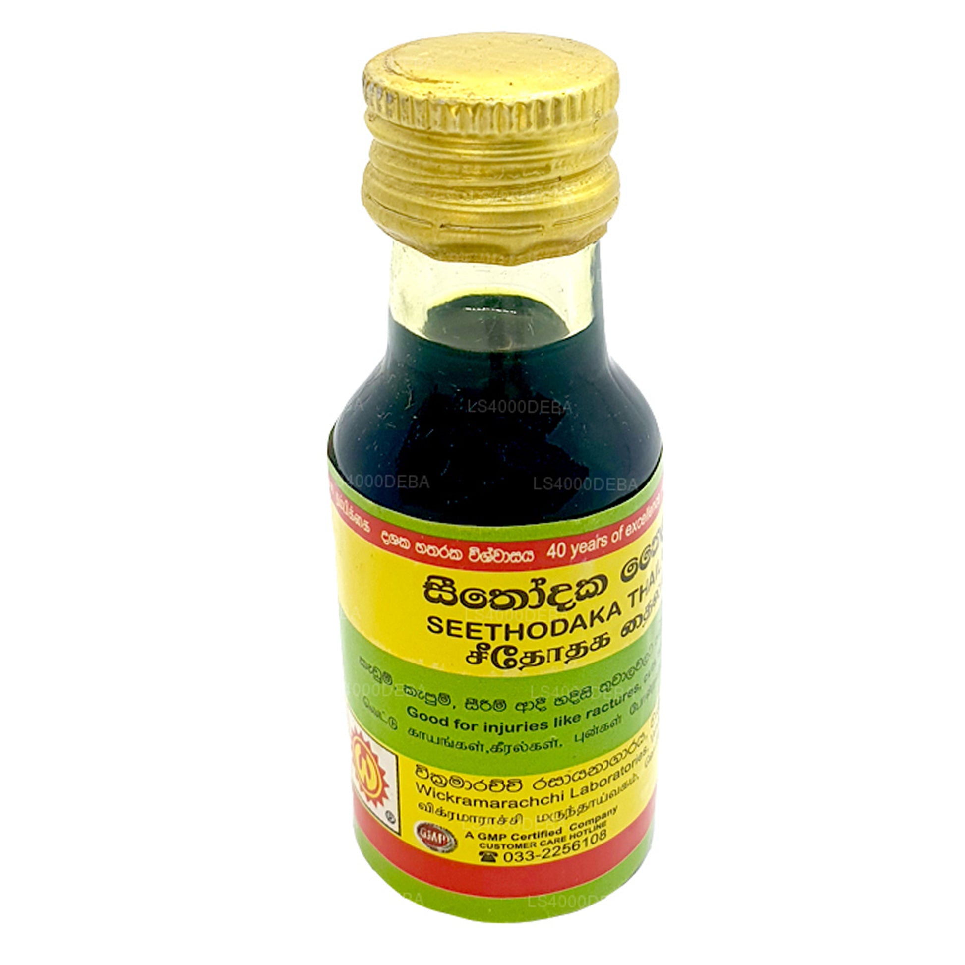 (SKU: LS4000BEC4) Wickramarachchi Labs Seethodaka Thailaya is an herbal oil designed for external application. Specifically recommended for septic ulcers, wounds, and burns, this oil contains ingredients known for their healing and antiseptic properties. It is intended for direct application to the affected skin areas.