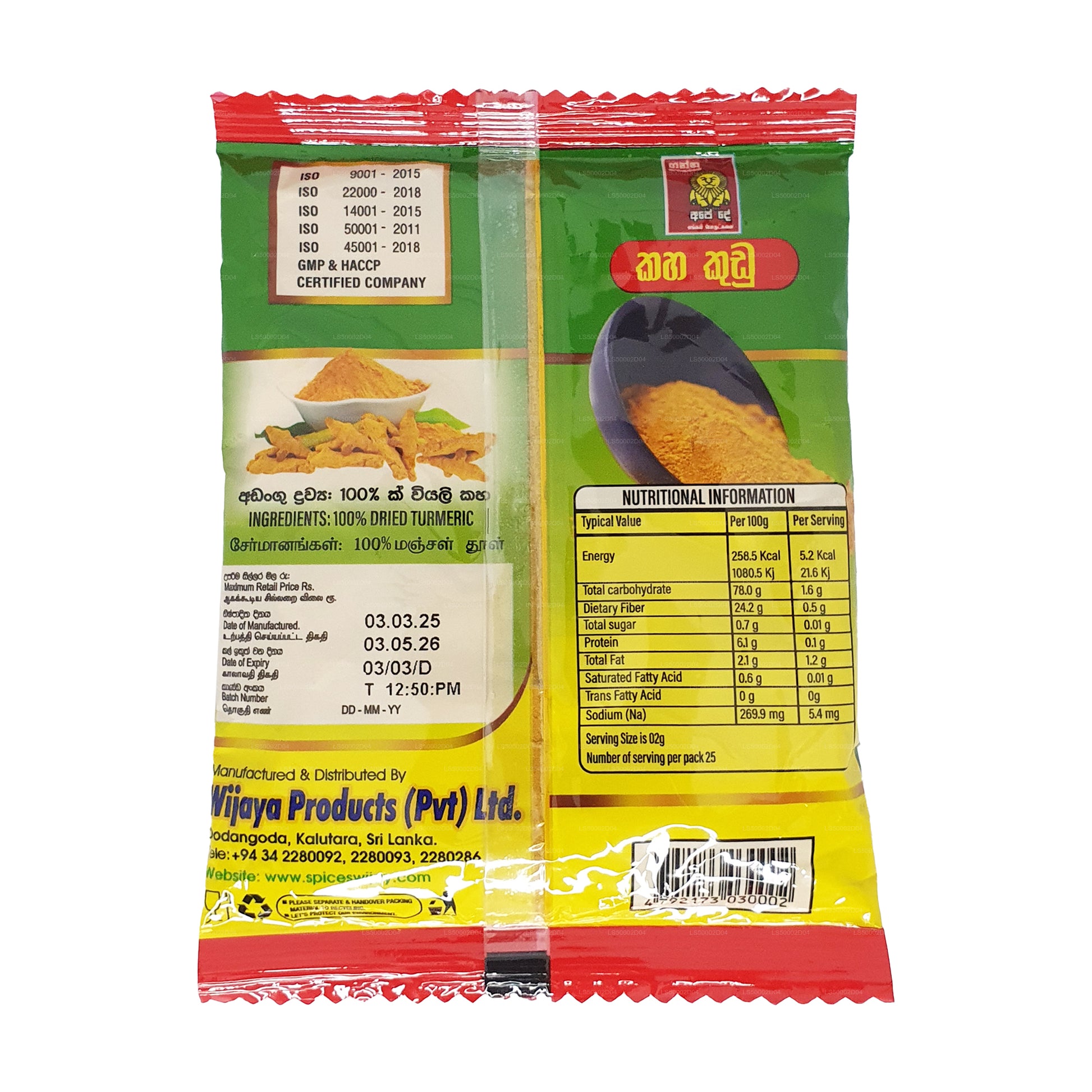(SKU: LS5000C93C) Producido con tubérculos de alta calidad de la planta Curcuma longa. La molienda se lleva a cabo en un molino, especialmente diseñado para moler tubérculos de cúrcuma, en estrictas condiciones higiénicas. El producto se envasa higiénicamente en bolsas laminadas para conservar su frescura durante un largo período