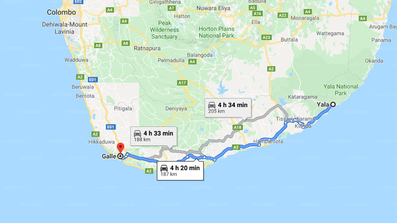 - Pick-up within the city limits of Yala and drop-off within the city limits of Galle.